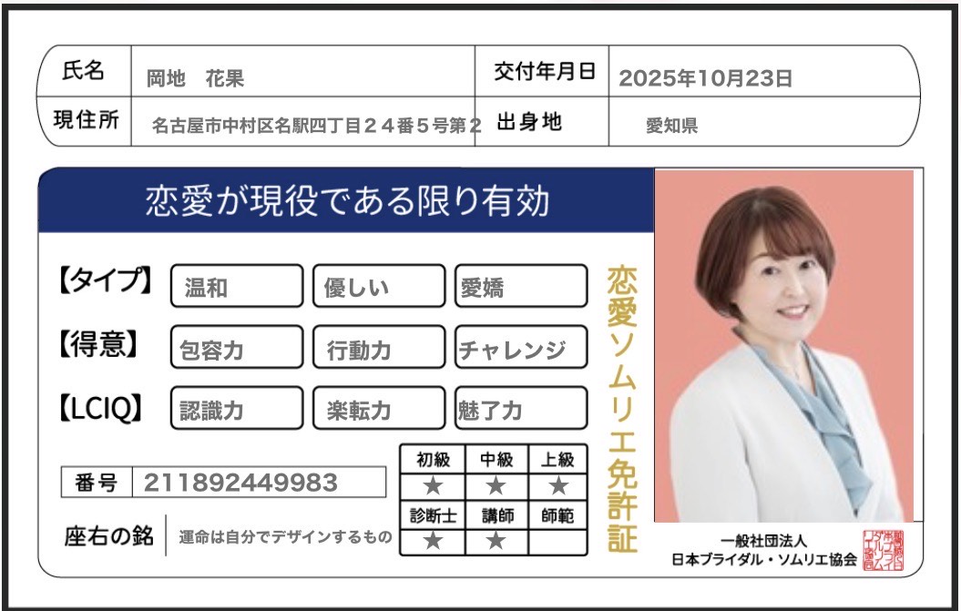 一般社団法人日本ブライダルソムリエ協会の認定資格を取得し、
